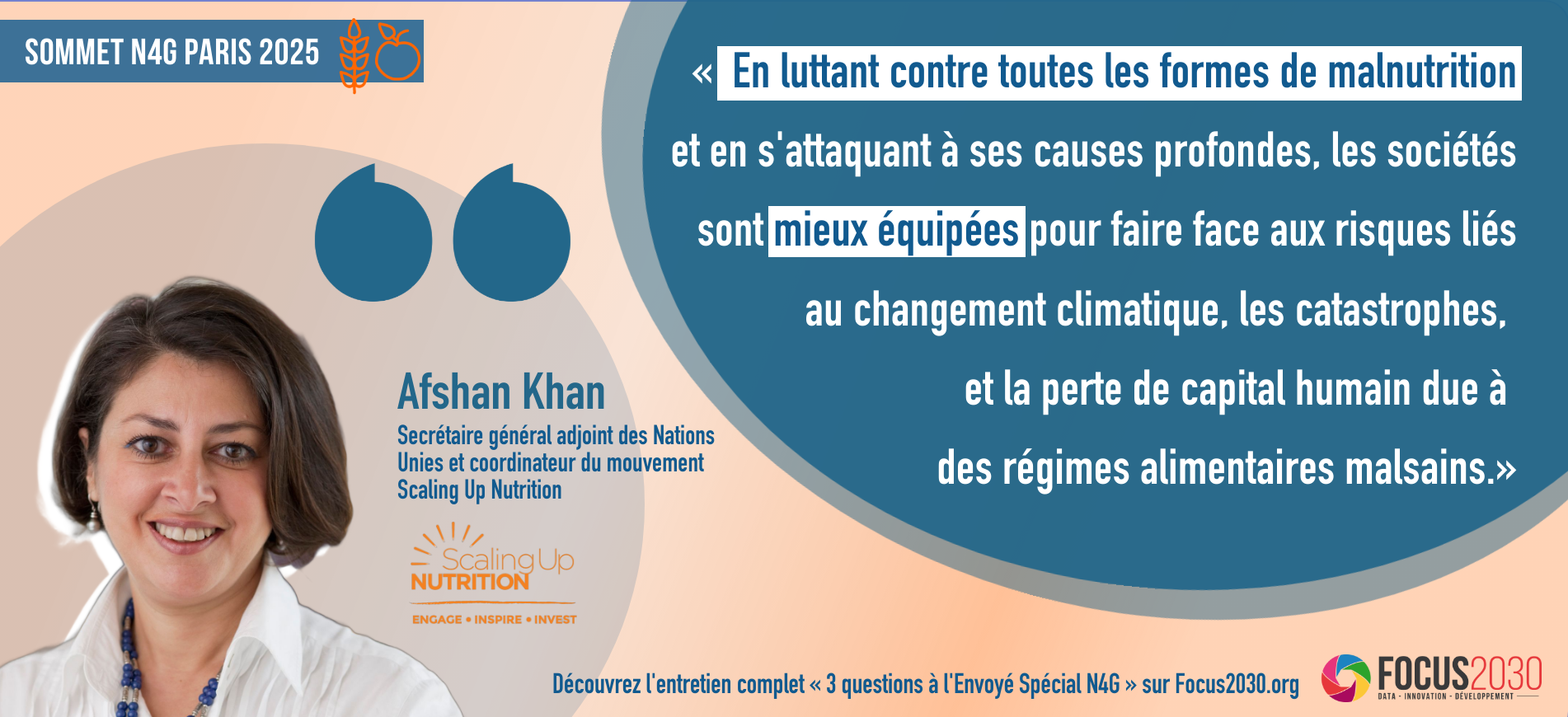 Afshan Khan : Le Mouvement SUN envisage le Sommet N4G de 2025 à Paris comme un moment clé pour mobiliser l’action mondiale contre la malnutrition, mais son succès dépend de plusieurs conditions essentielles.