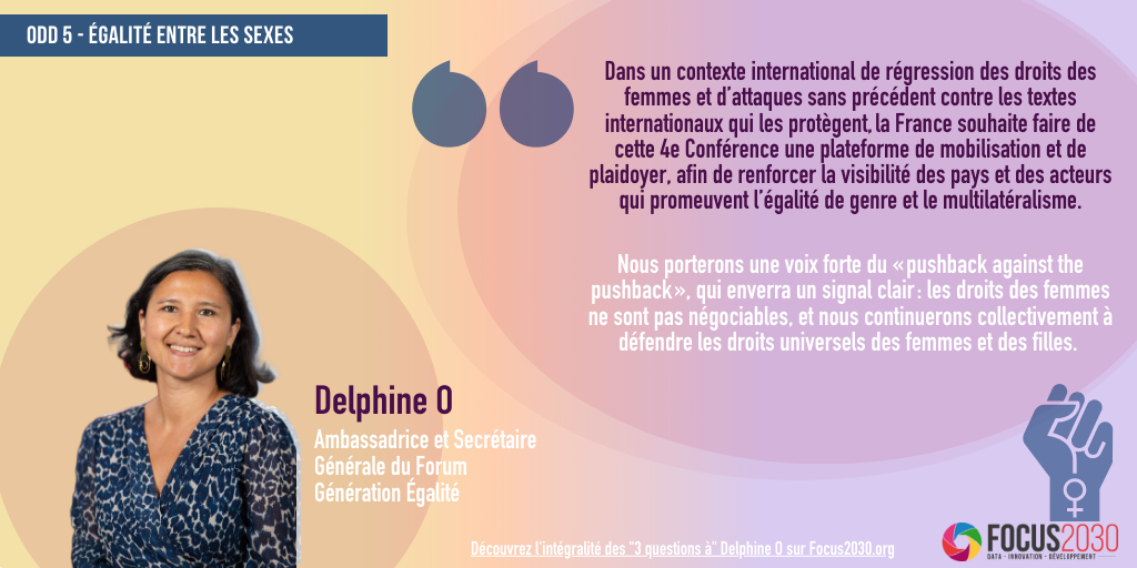 Focus 2030 : Après le Mexique, l’Allemagne et les Pays-Bas, la France s’apprête à accueillir une conférence internationale sur la diplomatie féministe. Quels en seront les enjeux majeurs et les résultats attendus ? Comment maintenir une mobilisation internationale forte alors que certains États, historiquement engagés pour les droits des femmes, semblent aujourd’hui se désengager sous l’effet conjugué de changements d’orientation politique et de coupes budgétaires affectant le financement de l’égalité femmes-hommes dans le monde ?