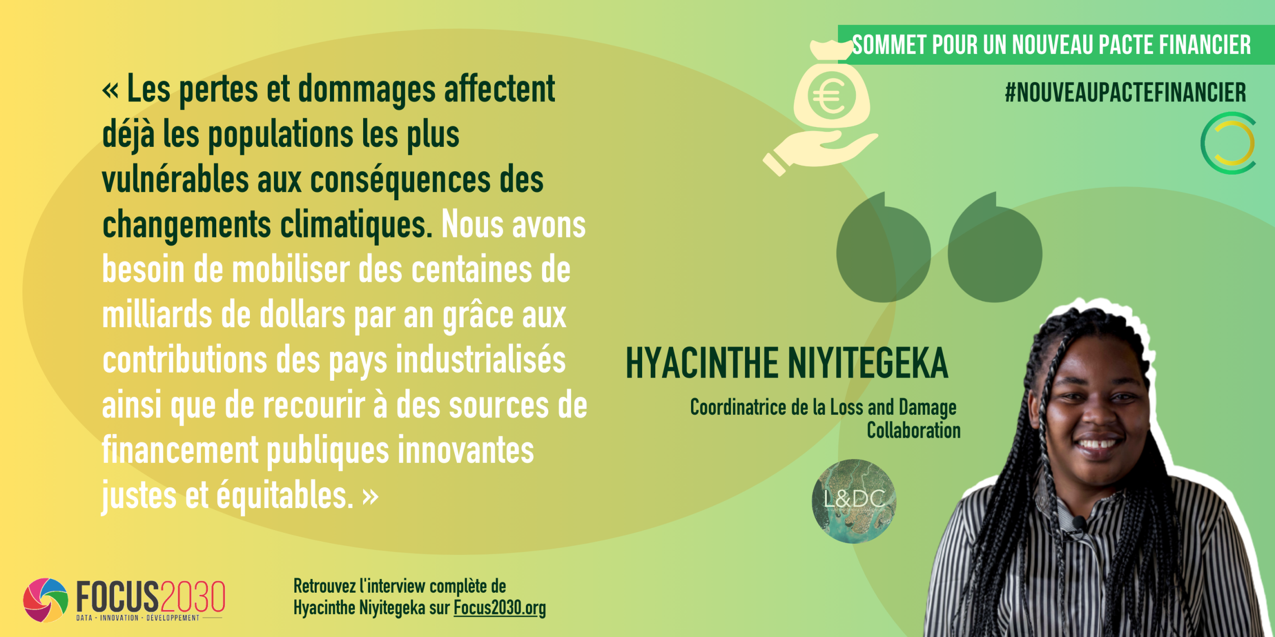 Hyacinthe Niyitegeka : Le Sommet pour un nouveau pacte financier mondial devrait reconnaître l’urgence de répondre à la question des pertes et dommages ainsi que leur réalité dans les pays en développement. Les participants au sommet doivent faire avancer les discussions sur les sources alternatives de financement pour y faire face, telles que les taxes ou les prélèvements sur les combustibles fossiles, les taxes sur le transport maritime international et un impôt mondial sur la fortune.