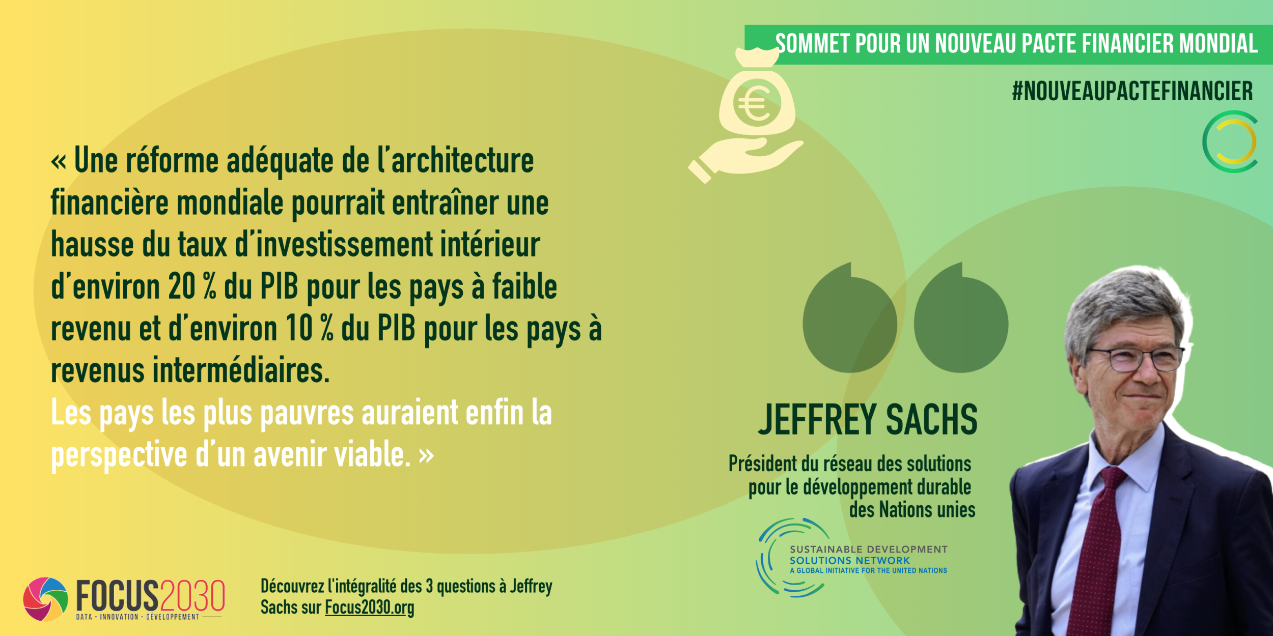 Jeffrey Sachs : Une réforme adéquate de l’architecture financière mondiale pourrait entraîner une hausse du taux d’investissement intérieur d’environ 20 % du PIB pour les pays à faible revenu et d’environ 10 % du PIB pour les pays à revenus intermédiaires. Cette augmentation des taux d’investissement permettrait d’accélérer la croissance économique et le développement durable, entraînant de manière exponentielle l’accès à l’éducation, à la santé, à l’électricité à faible émission de carbone, aux transports publics, au logement, à l’eau potable et à l’assainissement, ainsi qu’aux services numériques. Les pays les plus pauvres auraient enfin la perspective d’un avenir viable. Comme cela a été le cas en Chine entre 1980 et 2020, mettre fin à l’extrême pauvreté deviendrait possible et à portée de main.