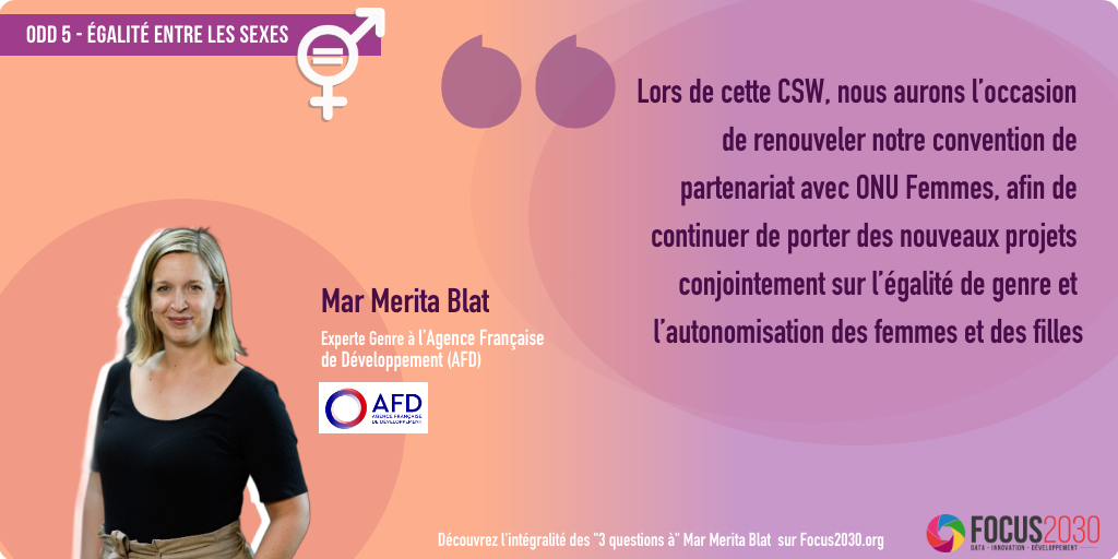 Mar Merita Blat : L’AFD s’est affirmée comme « agence féministe » depuis 2020, à la suite des engagements de la France en tant que diplomatie féministe en 2019, et dans le cadre de la préparation du Forum Génération Egalité.