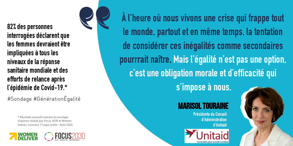 Focus 2030 : Selon notre sondage, 82% des personnes interrogées pensent que les femmes devraient être impliquées à tous les niveaux de la réponse sanitaire mondiale et des efforts de relance après l’épidémie de Covid-19, y compris dans le développement de politiques publiques et de traitements. Compte-tenu de cette aspiration citoyenne, comment mieux impliquer les femmes dans la réponse sanitaire mondiale selon vous ?