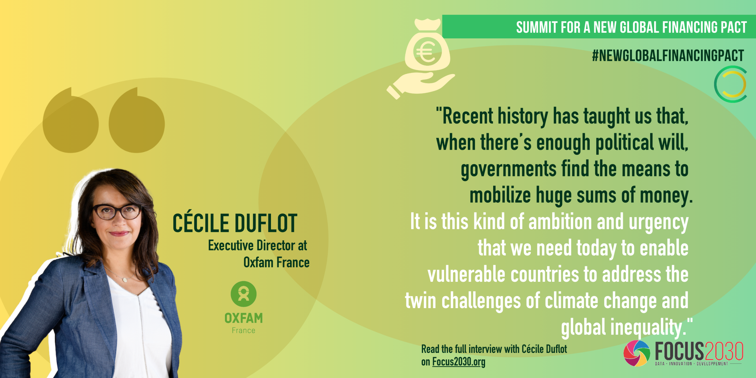 Focus 2030 : Oxfam and many other NGOs intend to mobilize citizens to put pressure on leaders taking part in the Summit for a New Global Financing Pact to generate ambitious commitments to fight poverty and climate change. How can the public get involved with Oxfam France ?