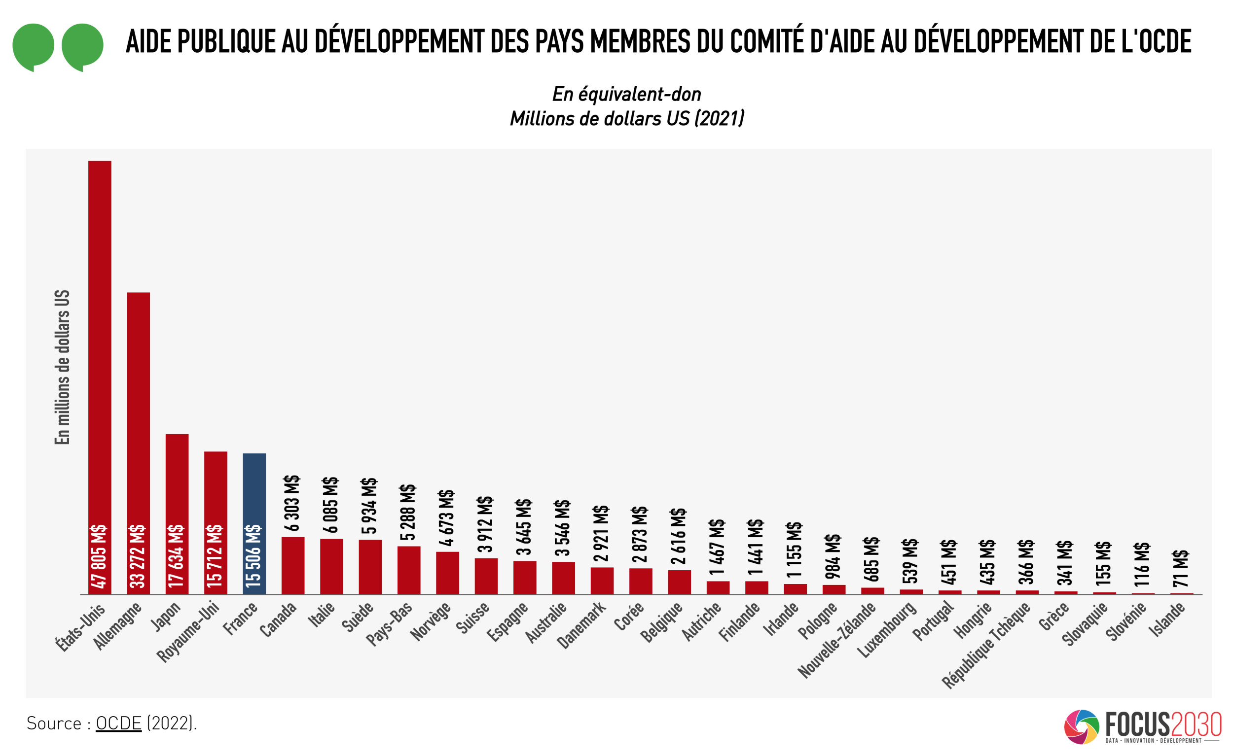 | Cet article présente les montants de l’aide publique au développement des principaux bailleurs de l’OCDE en 2021. Pour connaître les dernières statistiques disponibles, consulter cet article |