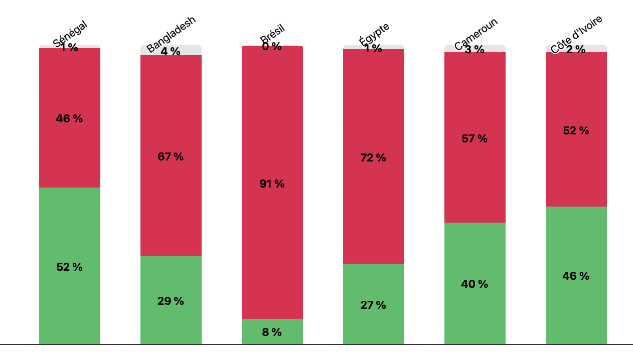 Pour rendre le graphique plus lisible, veuillez limiter le nombre d'items et/ou de réponses affichées en utilisant le bouton "Segmentations". Le cas échéant, vous pouvez également réduire le nombre de pays sélectionnés.