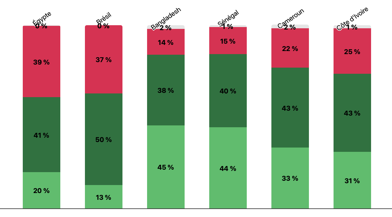 Pour rendre le graphique plus lisible, veuillez limiter le nombre d'items et/ou de réponses affichées en utilisant le bouton "Segmentations". Le cas échéant, vous pouvez également réduire le nombre de pays sélectionnés.