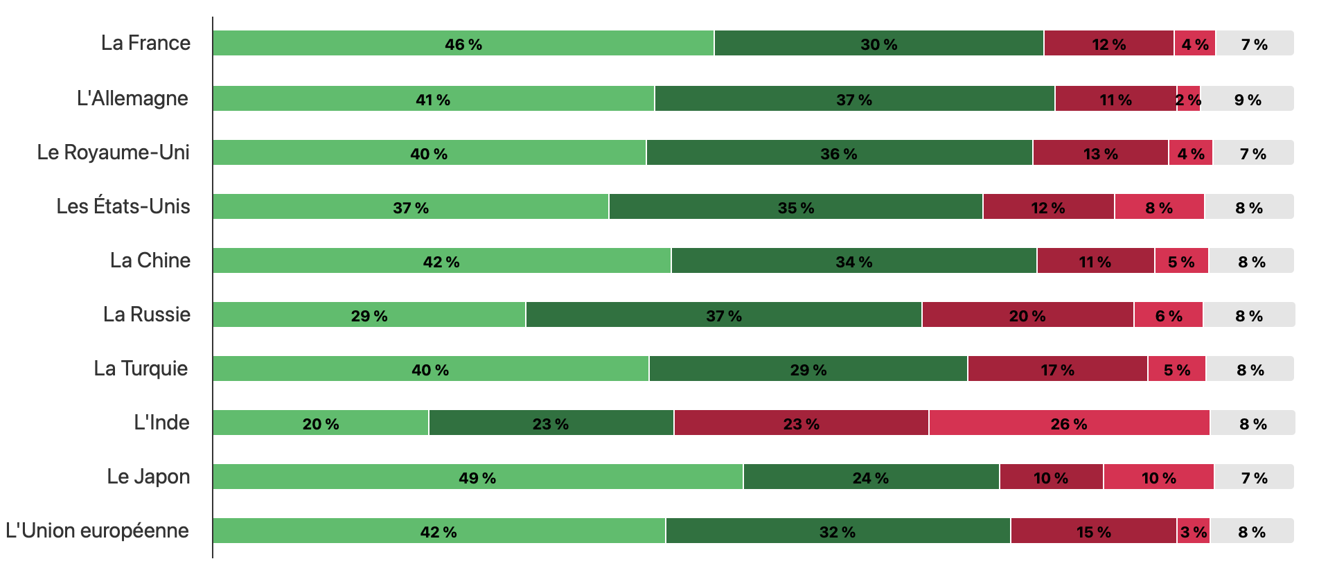Pour rendre le graphique plus lisible, veuillez limiter le nombre d'items et/ou de réponses affichées en utilisant le bouton "Segmentations". Le cas échéant, vous pouvez également réduire le nombre de pays sélectionnés.