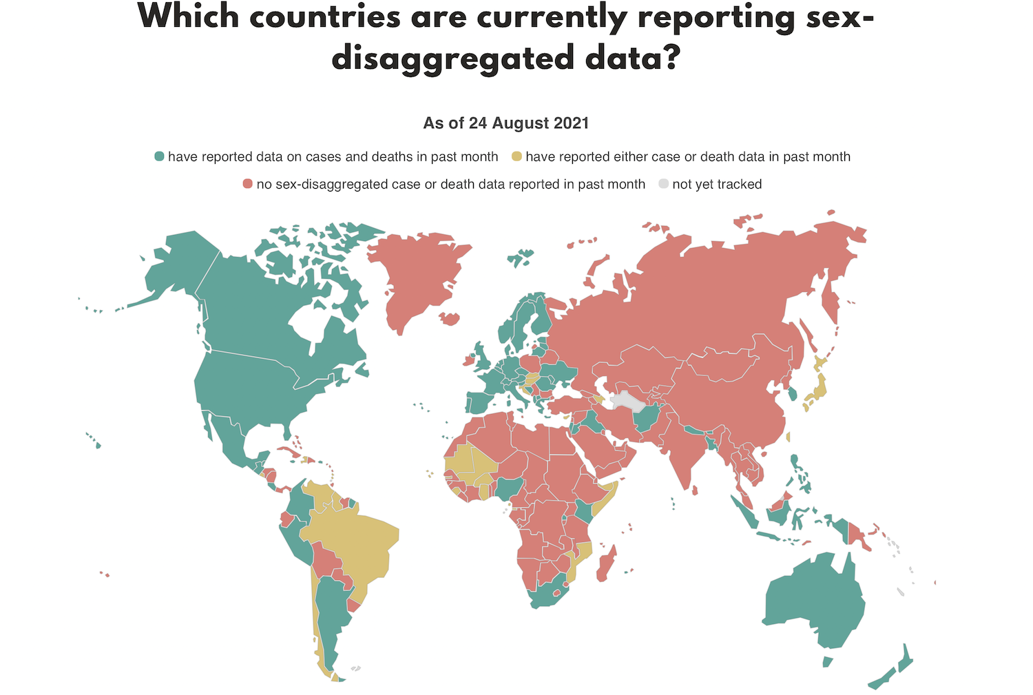 Le Sex, Gender and COVID-19 Project est un partenariat entre Global Health 50/50, le Centre africain de recherche sur la population et la santé (APHRC) et le Centre international de recherches sur les femmes (ICRW). Il comprend le COVID-19 Sex-Disaggregated Data Tracker, qui agrège les données désagrégées par sexe existantes sur les cas confirmés, les hospitalisations, les admissions en soins intensifs, les décès ou encore les vaccinations. À noter qu’au 24 août, sur 197 pays, seuls 92 rapportaient le nombre de cas et de décès désagrégés par sexe. Il est complété par le Sex, Gender and COVID-19 Health Policy Portal, une analyse de l’intégration du sexe et du genre dans les réponses sanitaires nationales à la pandémie.