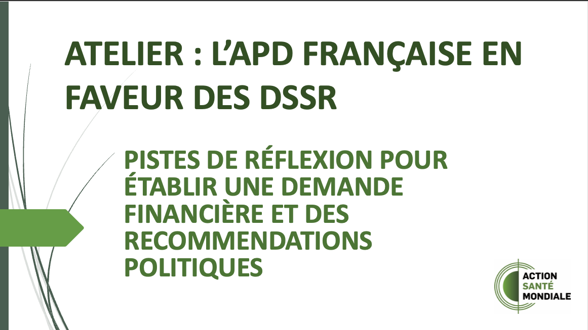 Le leadership français sur la Coalition d’action DSSR représente donc une opportunité majeure pour renforcer les engagements politiques en faveur de la réalisation des DSSR, et s’assurer que ces engagements soient concrétisés à travers des financements suffisamment ambitieux pour contribuer à combler le déficit de financement international.