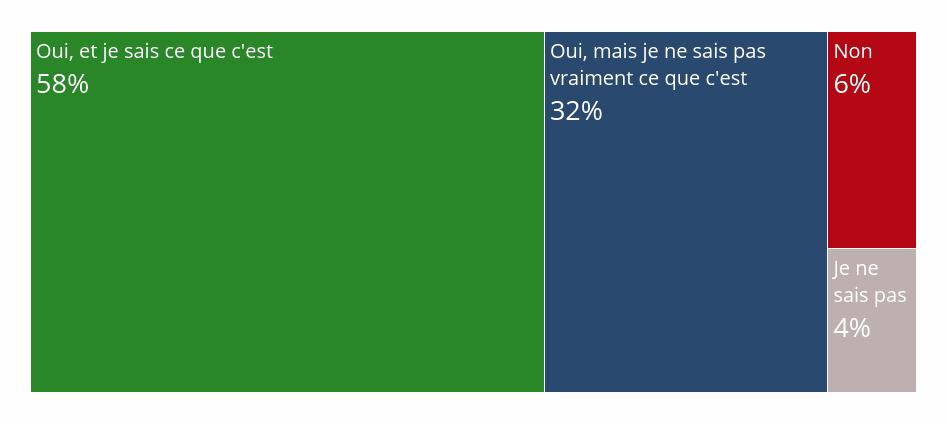 58% des français·e·s déclarent savoir ce qu’est le G7 contre 32% qui en ont entendu parler « sans réellement savoir ce que c’est ». Ces résultats déclaratifs ne nous précisent cependant pas dans quelle mesure les français·e·s connaissent réellement les enjeux discutés au G7, la capacité d’action du G7, les décisions susceptibles d’en découler ou les pays membres appartenant au G7.
