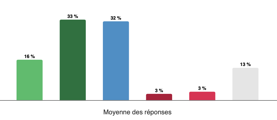 Je soutiens fortement Je soutiens Ni je ne soutiens ni je m‘oppose Je m‘oppose Je m’oppose fortement Je ne sais pas