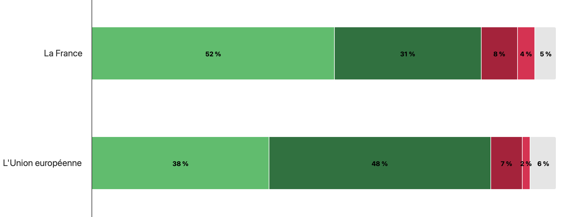Pour rendre le graphique plus lisible, veuillez limiter le nombre d'items et/ou de réponses affichées en utilisant le bouton "Segmentations". Le cas échéant, vous pouvez également réduire le nombre de pays sélectionnés.