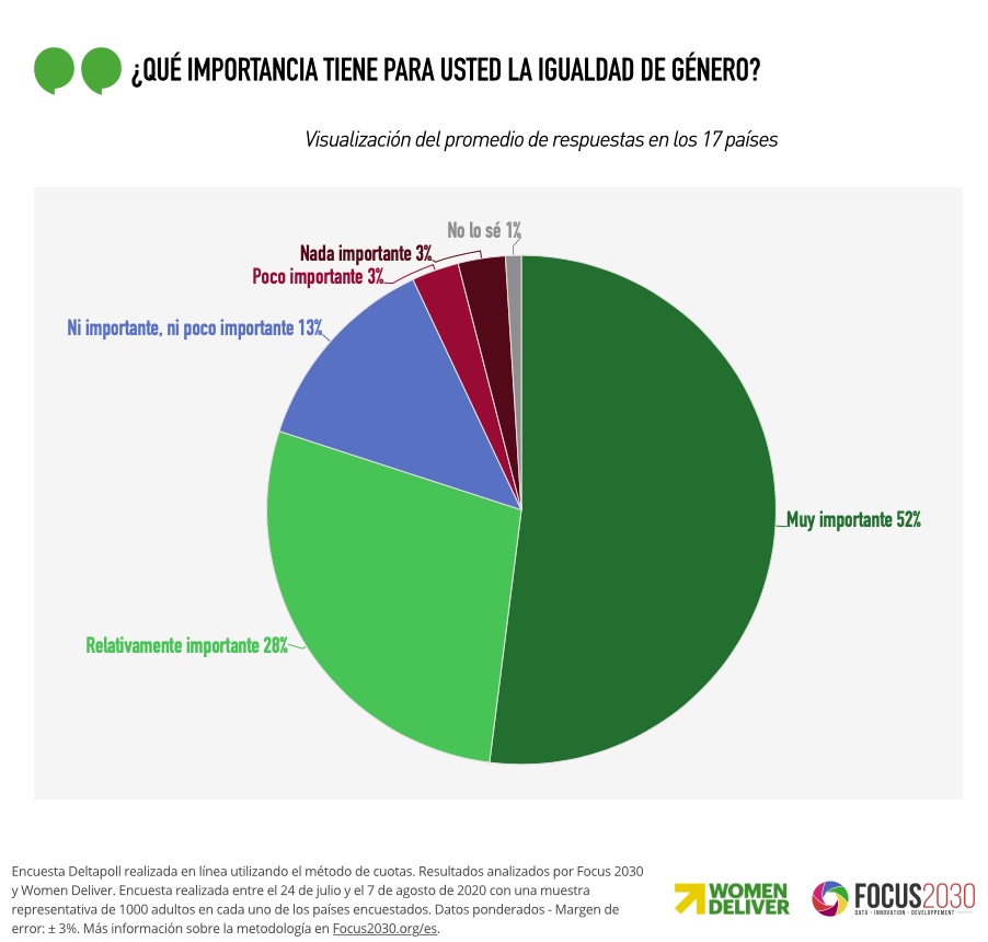 Descubre los nueve gráficos más impactantes del estudio Expectativas ciudadanas a favor de la igualdad de género: una guía para el cambio, codirigido por Women Deliver y Focus 2030.