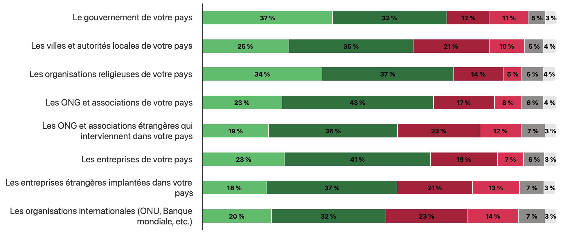 Faites-vous confiance ou non aux acteurs suivants pour améliorer les conditions de vie de la population dans votre pays ?