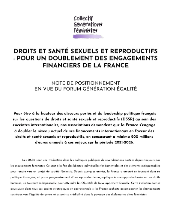 La mobilisation de Générations Féministes s’inscrit dans une stratégie de plaidoyer pour que soient adoptées des approches féministes dans l’élaboration des politiques publiques, la représentation et la participation des associations féministes les plus diverses dans la co-construction du Forum Génération Égalité et l’augmentation des financements pour les associations féministes.