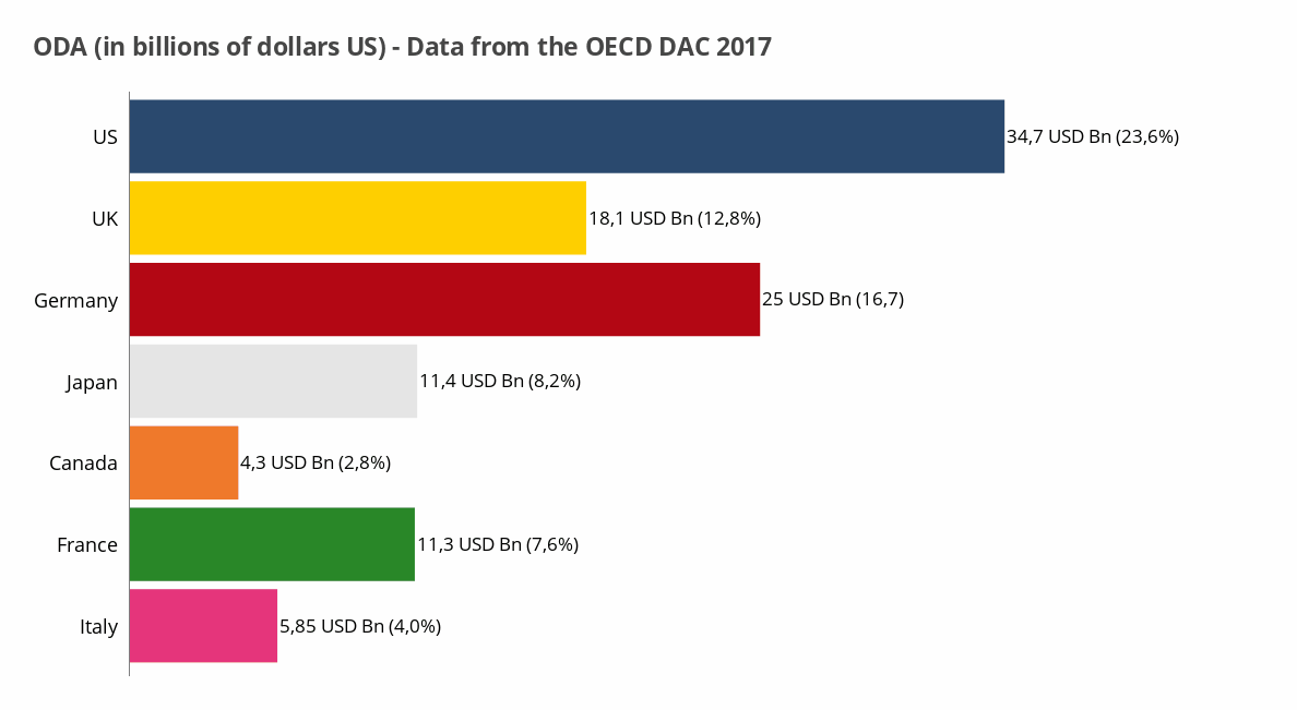 How much do the G7 countries give in Official Development Assistance (ODA)?