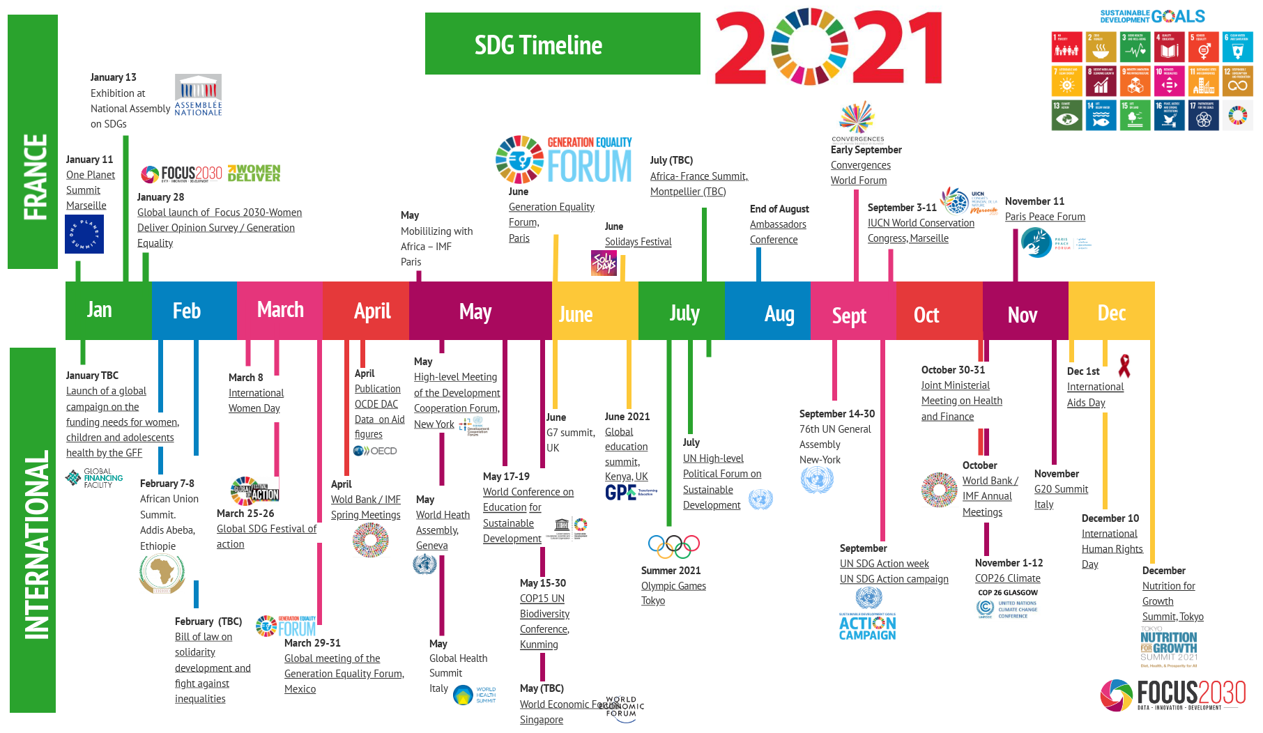 Find in this timeline the agenda of all the major events of international solidarity and the Sustainable Development Goals, in France and internationally in 2022: G7, G20, UNGA...