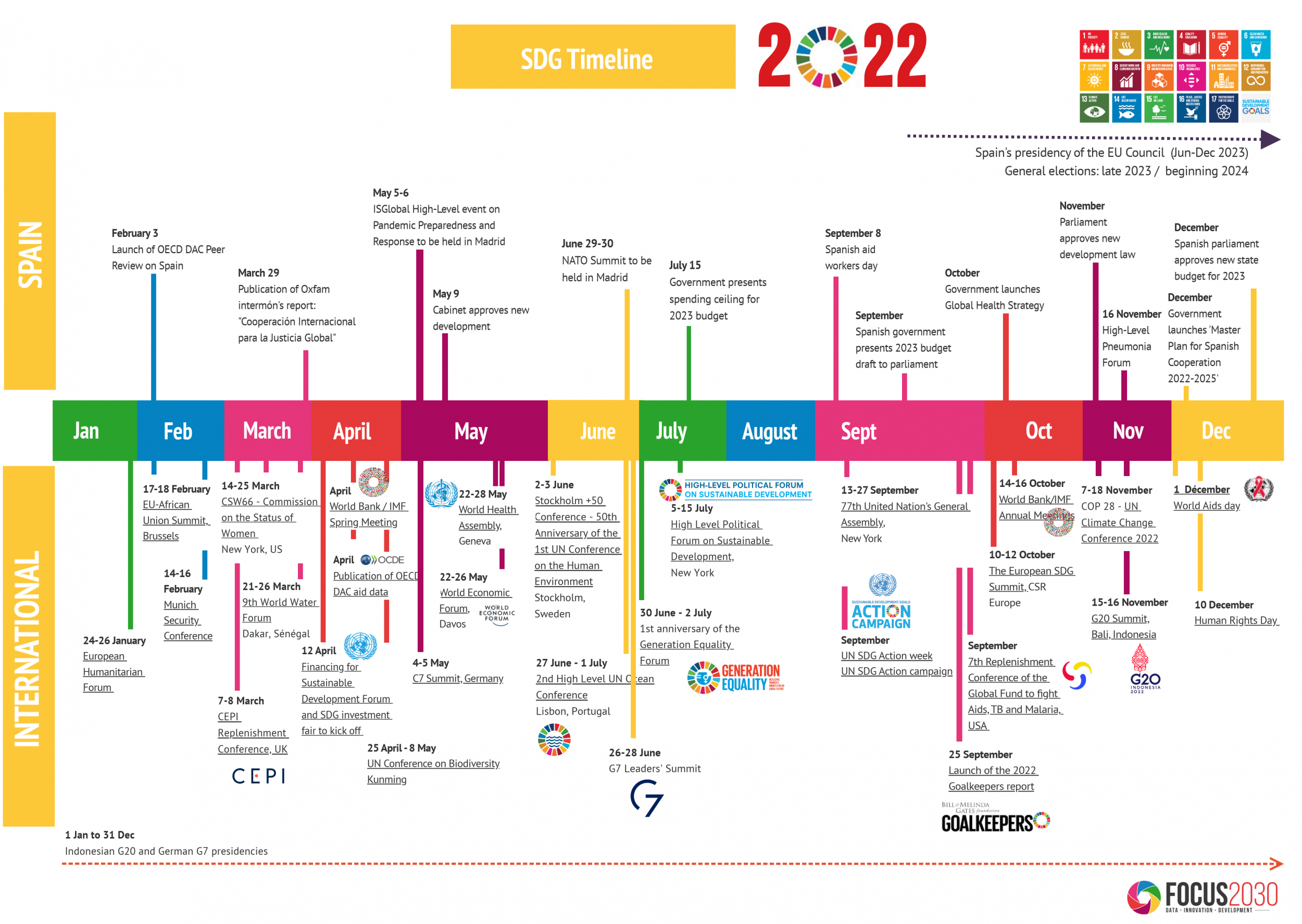 En esta agenda, encontrará los principales eventos relacionados con la solidaridad internacional y los Objetivos de Desarrollo Sostenible en España y a nivel internacional en 2022: G7, G20, UNGA...