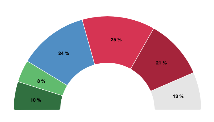 Une fois l’enquête terminée, les données finales sont ensuite pondérées statistiquement selon le profil national de tous les adultes de 18 ans et plus (y compris les personnes sans accès à Internet). La pondération est réalisée par âge, sexe, classe sociale, région, niveau d’éducation, vote des sondé·e·s lors des élections précédentes et orientation politique.