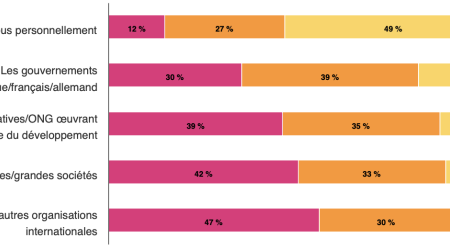 Les résultats sont présentés en pourcentage de réponses calculé par rapport à l’échantillon représentatif de la population adulte respectivement dans chacun des quatre pays dans lesquels les sondages DEL sont menés.