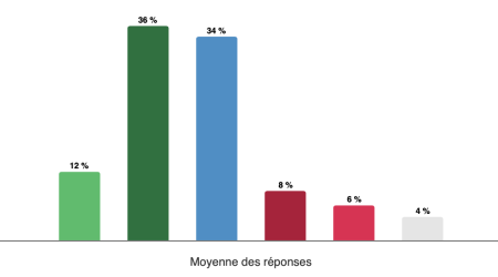 Pour les questions offrant une échelle de réponse de 0 à 10, les réponses sont présentées à partir du regroupement suivant : somme de 0 à 3 - somme de 4 à 6 - somme de 7 à 10.