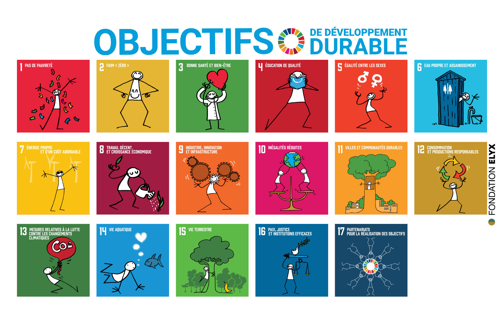 Adoptés par les Nations Unies après de longues consultations incluant ONG, chercheur·ses, organisations internationales, gouvernements, mouvements citoyens, les 17 objectifs à atteindre d’ici 2030 visent à ne laisser personne de côté en considérant les liens intrinsèques entre pauvreté et inégalités, faim ; accès à la santé ; à l’éducation ; à l’eau ; égalité femmes-hommes ; consommation responsable ; protection de l’environnement et dérèglements climatiques.