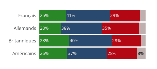 A quelque chose près (la marge d’erreur de ce sondage étant de ± 2%), les américains se distinguent un peu des trois autres pays tant sur le ressenti de préoccupation (43%) que sur l’incapacité à répondre à cette question (9%).