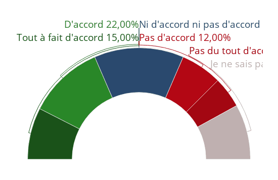En revanche, cette question recueille un pourcentage élevé de « je ne sais pas » (18%). Ce chiffre associé aux 21% des Français qui ne sont ni d’accord ni pas d’accord avec cet énoncé, impose de relativiser ces résultats.