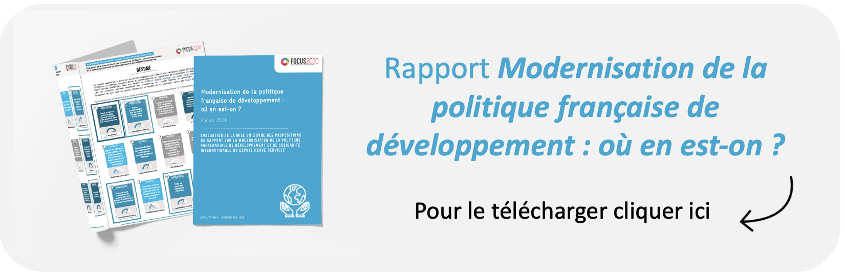 Pourtant, de nombreux constats du rapport Berville sur l’APD française s’appliquent toujours en 2021. Elle est organisée selon une architecture complexe, ne facilitant pas son suivi ni son appropriation tant par les acteurs de la société civile, les parlementaires, que les médias. Elle manque de transparence et n’est pas adaptée à un exercice légitime de redevabilité. En parallèle, l’impact des actions menées par la France dans le cadre de sa politique de développement demeure difficile à mesurer, laissant planer le doute sur son efficacité.