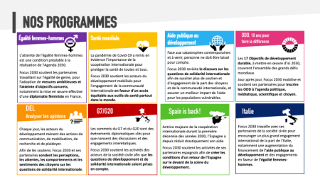 Pour chacun de ces programmes, Focus 2030 décline ses différents modes d’intervention :