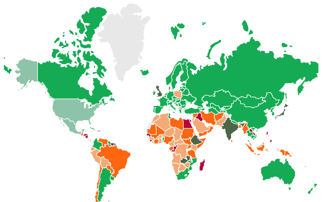 La carte ci-dessous présente l’état des législations dans le monde en 2024 :