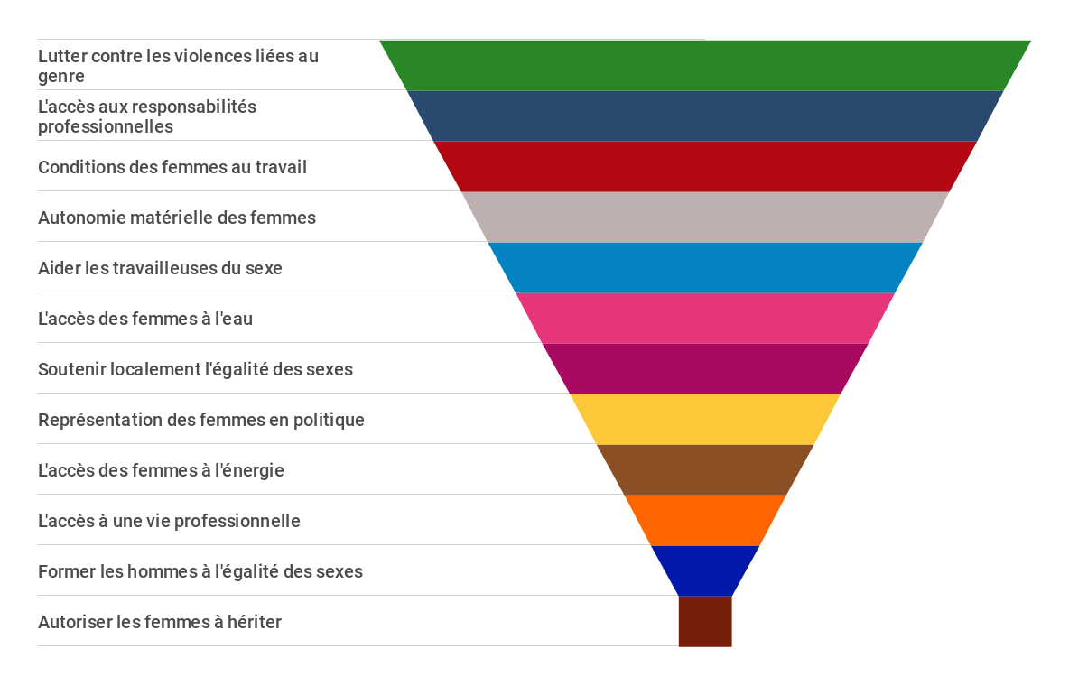 Pour autant, combattre les violences faites au femmes représente dans l’opinion publique française, la première des priorités dans la lutte pour l’égalité des sexes.