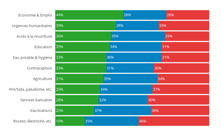 Despite these consensual themes, between 15% and 18% of French people are unable to identify priorities for development aid. This percentage illustrates a distance between French people and development issues.