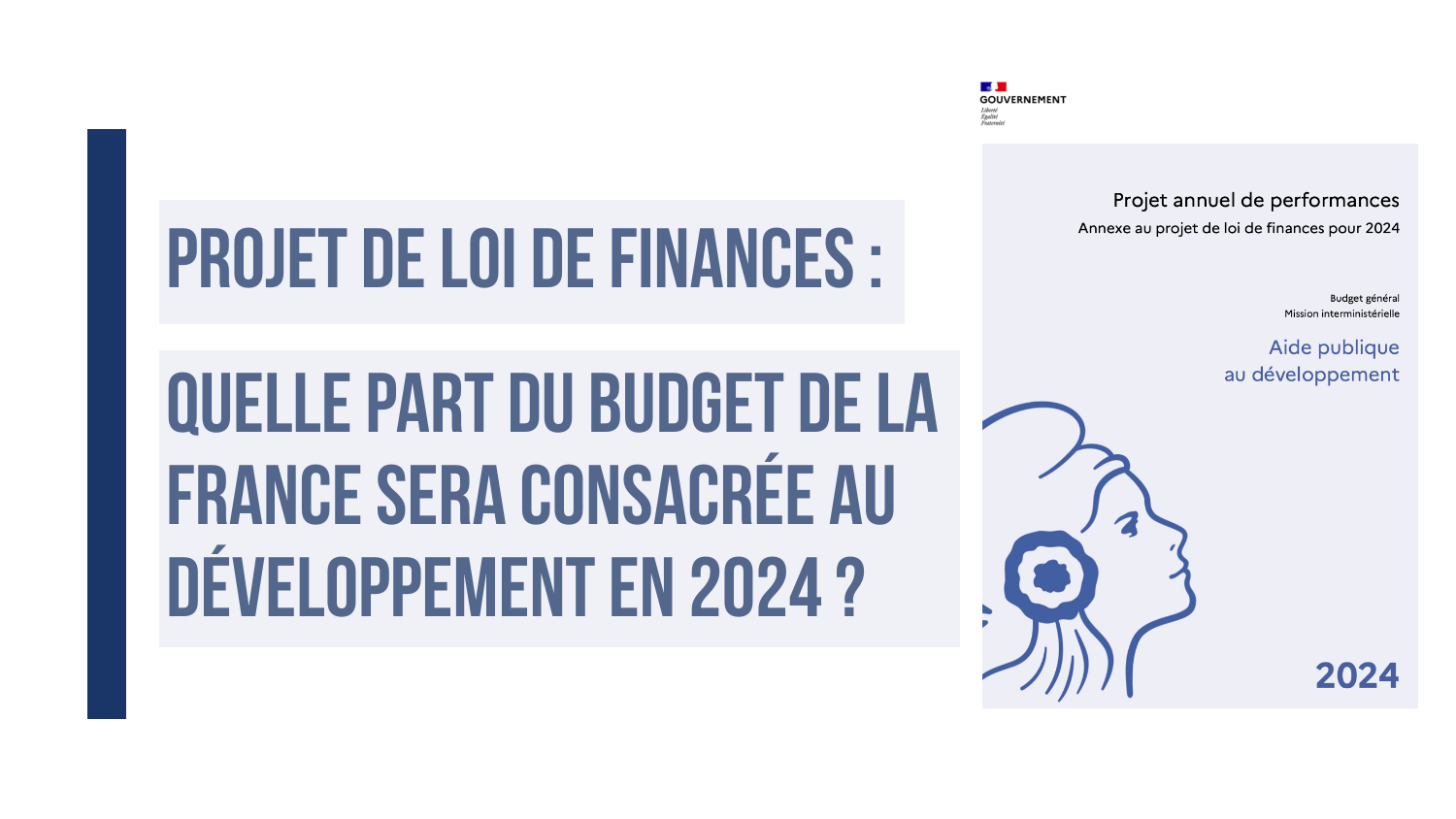 - Le PLF2024 entérine une stagnation des crédits budgétaires alloués à la mission “Aide publique au développement” en 2024 (5,91 milliards d’€), qui représente un tiers de l’aide publique au développement totale de la France.