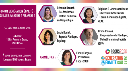 – la publication d’un Baromètre de la solidarité international recueillant "Les perceptions des citoyen·nes français·es sur l’égalité femmes-hommes à quelques mois du Forum Génération Égalité" (publié en juillet 2020)