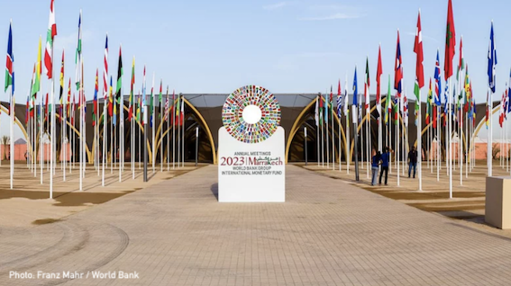 Les Assemblées annuelles du Groupe de la Banque mondiale et du Fonds Monétaire International (FMI) ont eu lieu du 9 au 15 octobre 2023 à Marrakech. Ces réunions, qui rassemblent chaque année une variété d’acteurs (banquiers centraux, ministres des finances, représentants de la société civile, universitaires, représentants du secteur privé) ont pour objectif de mettre au coeur des discussions des enjeux d’importance internationale tels que la lutte contre la pauvreté, la promotion du développement économique ou encore la préservation du climat et de la biodiversité.