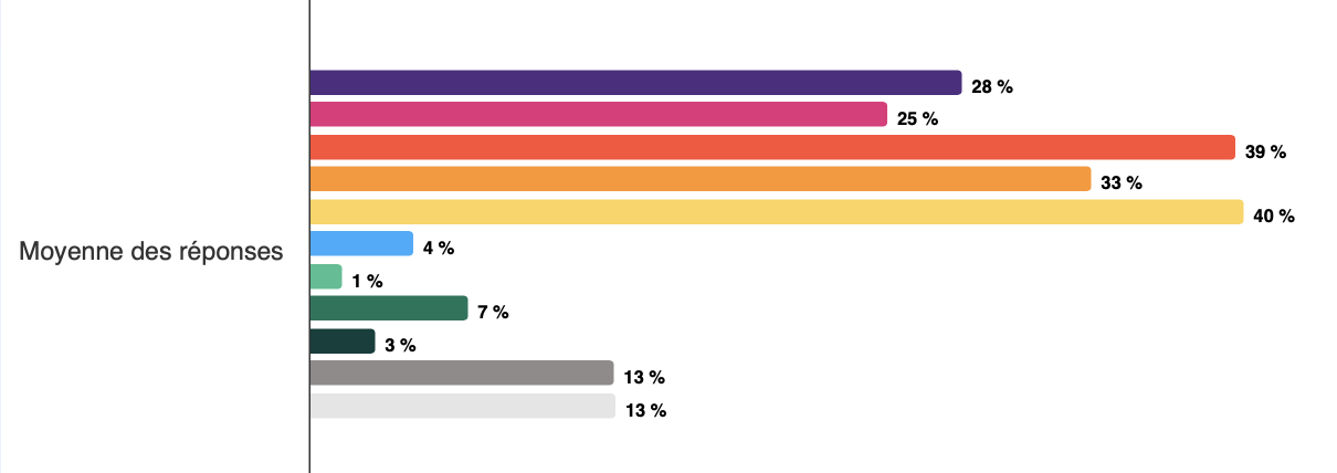Pour rendre le graphique plus lisible, veuillez limiter le nombre d'items et/ou de réponses affichées en utilisant le bouton "Segmentations". Le cas échéant, vous pouvez également réduire le nombre de pays sélectionnés.