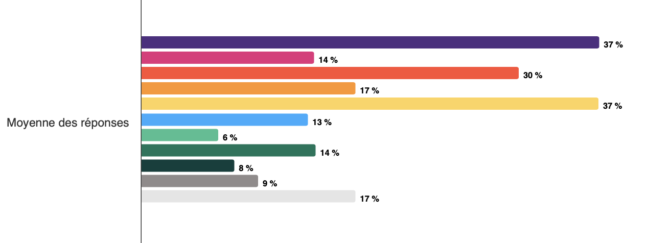 Pour rendre le graphique plus lisible, veuillez limiter le nombre d'items et/ou de réponses affichées en utilisant le bouton "Segmentations". Le cas échéant, vous pouvez également réduire le nombre de pays sélectionnés.