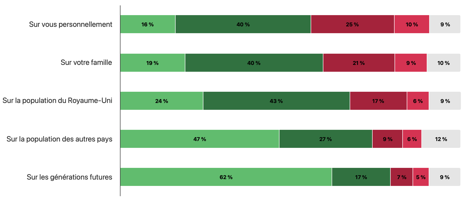 Sur vous personnellement Sur votre famille Sur la population du Royaume-Uni Sur la population des autres pays Sur les générations futures Tout cocher /Tout décocher