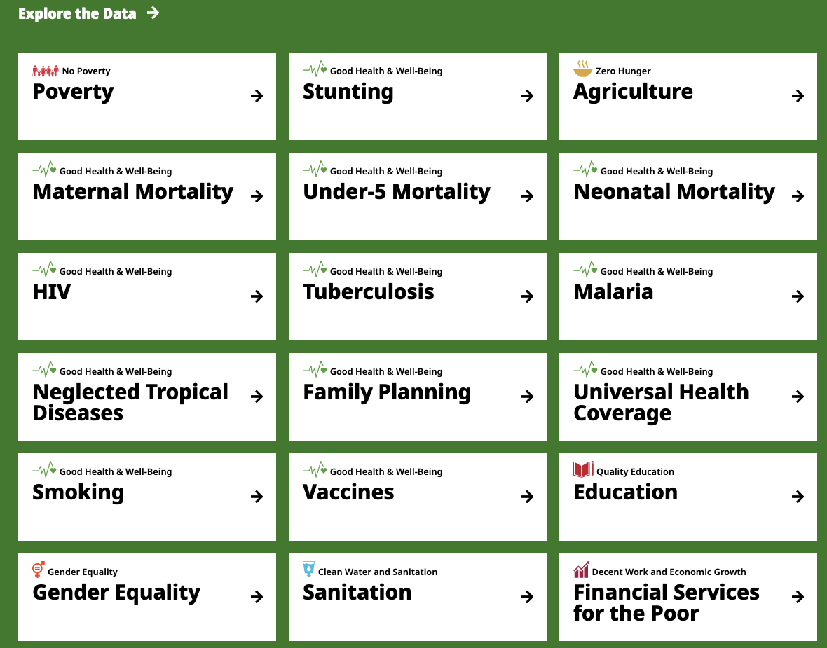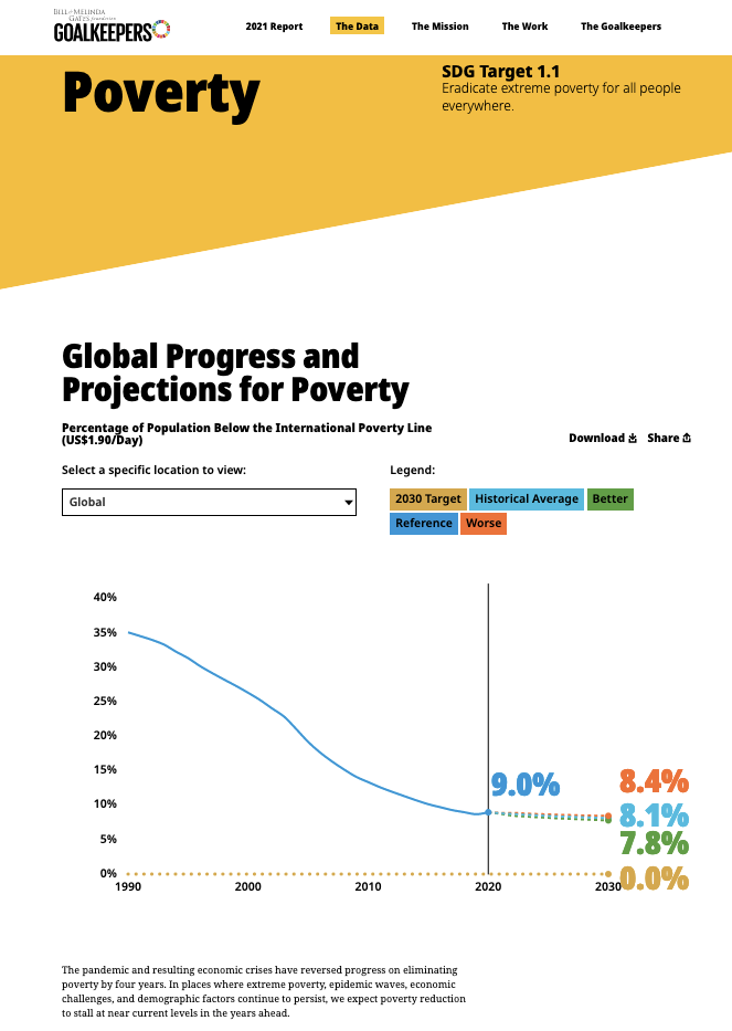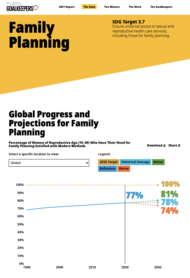 Sur le site de la Fondation Bill et Melinda Gates, vous pouvez explorer les données du rapport Goalkeepers grâce à des infographies interactives.