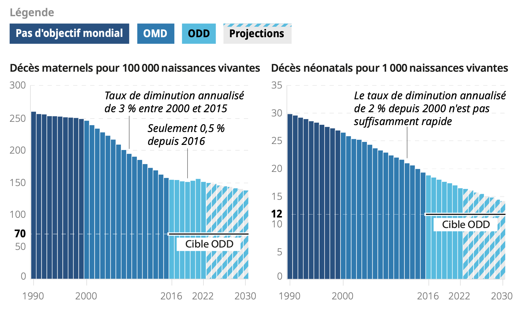 Les Objectifs de développement durable, adoptés en 2015 par l’ensemble des membres des Nations unies, ont entre autres pour ambition d’éliminer les décès évitables de nouveau-nés et d’enfants de moins de 5 ans et de diminuer le taux mondial de mortalité maternelle au-dessous de 70 pour 100 000 naissances vivantes d’ici à 2030.