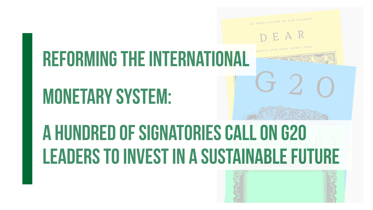 Ahead of the IMF and the World Bank’s spring meetings, which will be held from 17 to 19 April, Project Everyone published an open letter calling on G20 countries to transform and adapt financial systems in the interests of a sustainable future for people and the planet. Around a hundred activists, former leaders, researchers and artists are urging G20 countries to :