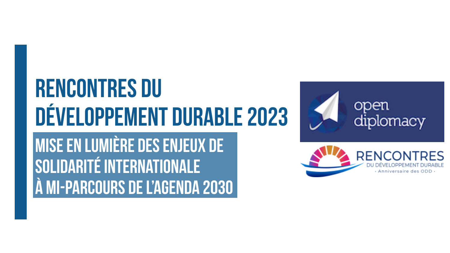Les Rencontres du Développement Durable sont organisées par l’Institut Open Diplomacy avec l’ambition de sensibiliser le plus grand nombre autour des Objectifs de développement durable (ODD) et de saisir les défis à relever pour tenir la promesse de l’Agenda 2030.