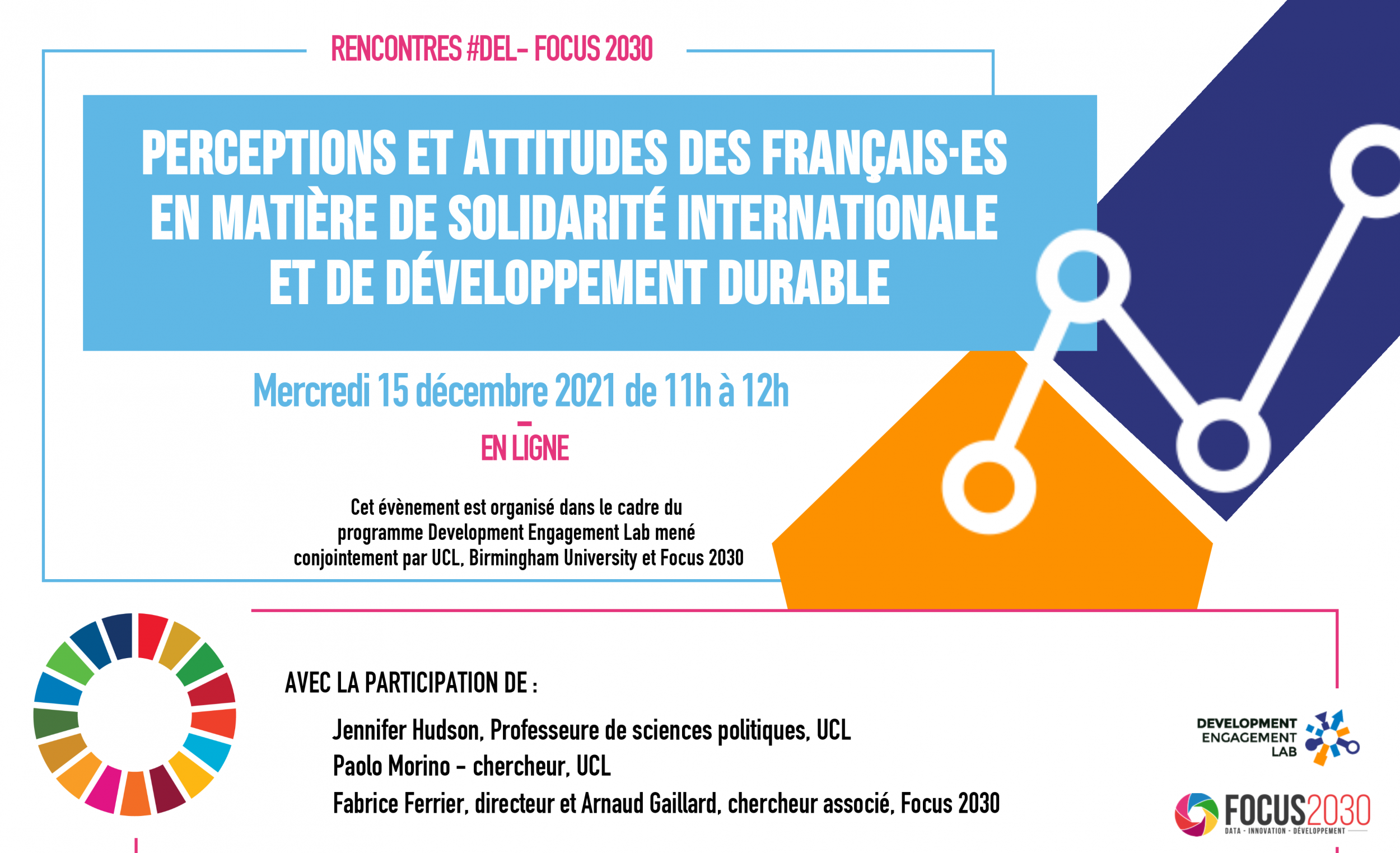 En amont de la présidence française de l’Europe, de l’élection présidentielle à venir, et dans le contexte d’une interminable pandémie de Covid-19, Focus 2030 est heureux de vous convier au dévoilement des derniers résultats de sondages menés dans le cadre du programme DEL en collaboration avec UCL et Birmingham University.