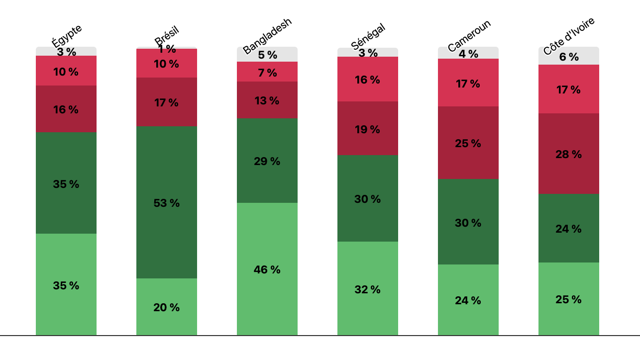 Pour rendre le graphique plus lisible, veuillez limiter le nombre d'items et/ou de réponses affichées en utilisant le bouton "Segmentations". Le cas échéant, vous pouvez également réduire le nombre de pays sélectionnés.