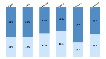 Égypte, Cameroun, Côte d’Ivoire et Sénégal : sexe, âge, région, taille d’agglomération
