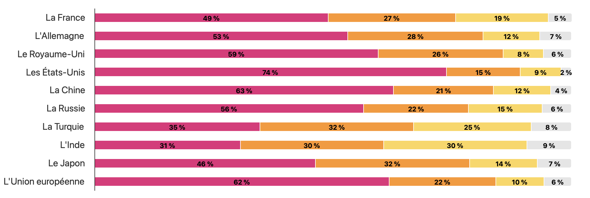Cette enquête a été réalisée en ligne par Toluna Harris Interactive pour Focus 2030 du 21 février au 12 mars 2025 auprès d’échantillons représentatifs de la population âgée de 18 ans et plus dans six pays partenaires de la France :