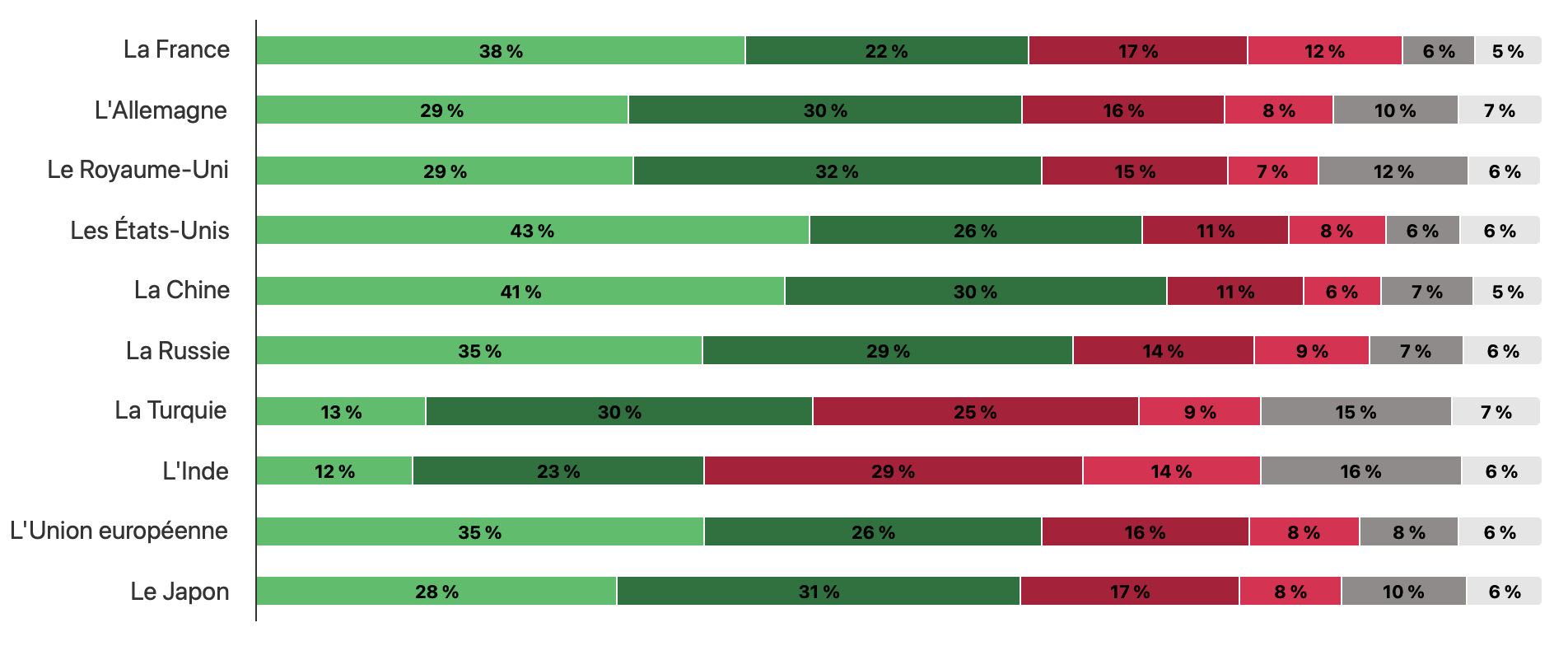 Pour rendre le graphique plus lisible, veuillez limiter le nombre d'items et/ou de réponses affichées en utilisant le bouton "Segmentations". Le cas échéant, vous pouvez également réduire le nombre de pays sélectionnés.