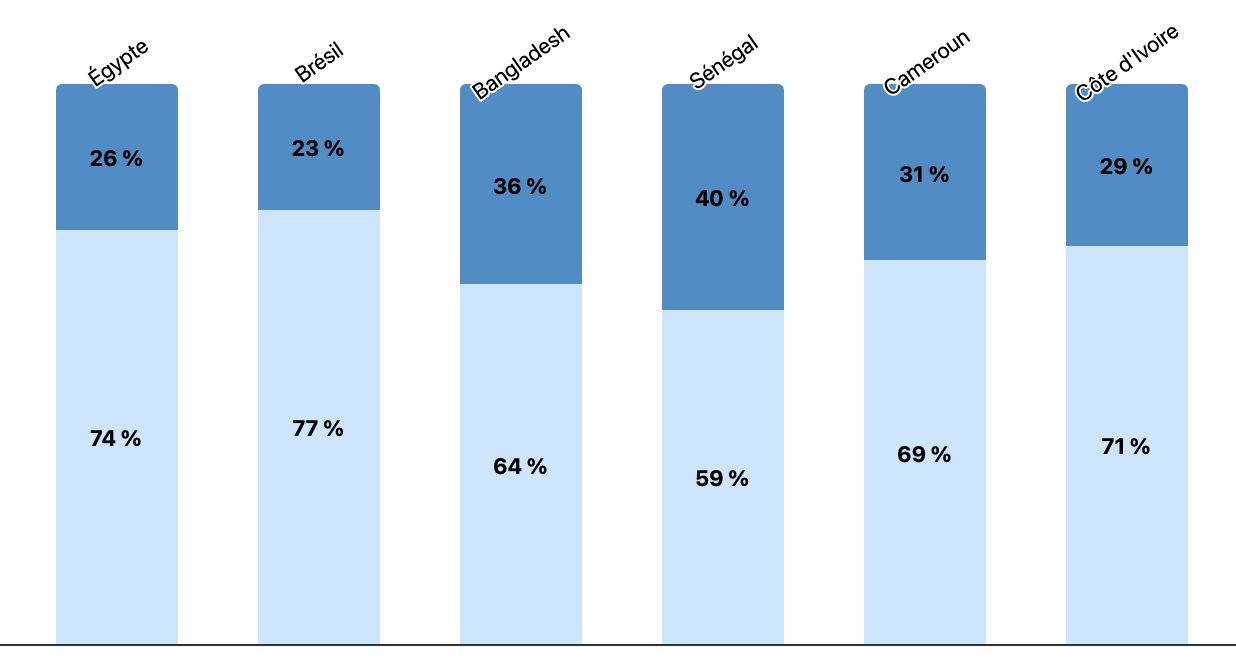 Cette enquête a été réalisée en ligne par Toluna Harris Interactive pour Focus 2030 du 21 février au 12 mars 2025 auprès d’échantillons représentatifs de la population âgée de 18 ans et plus dans six pays partenaires de la France :