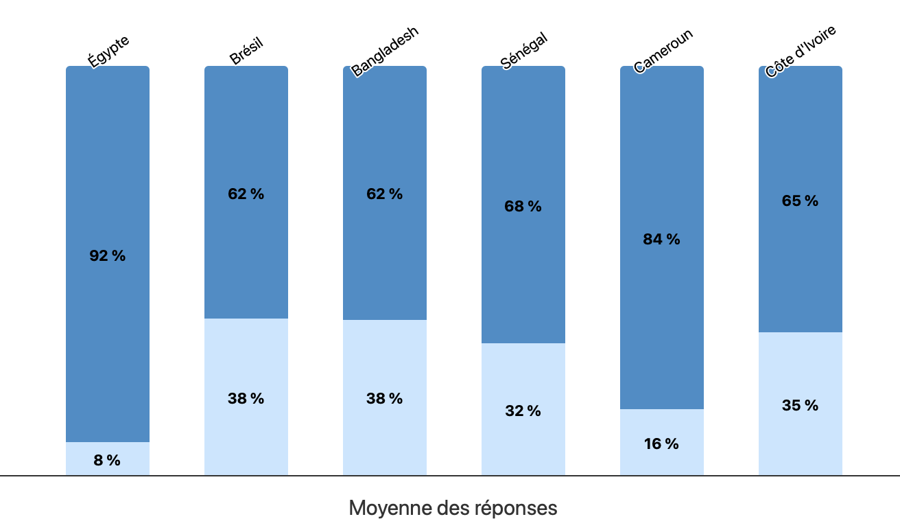Pour rendre le graphique plus lisible, veuillez limiter le nombre d'items et/ou de réponses affichées en utilisant le bouton "Segmentations". Le cas échéant, vous pouvez également réduire le nombre de pays sélectionnés.